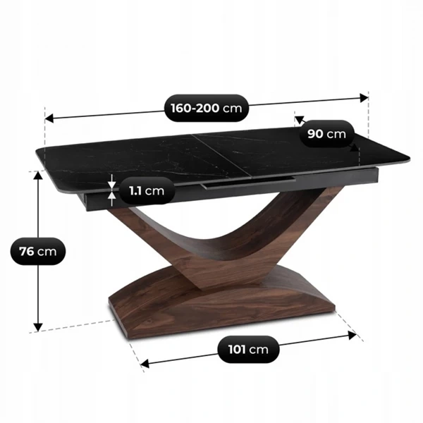 Maksymalna długość stołu po rozłożeniu: