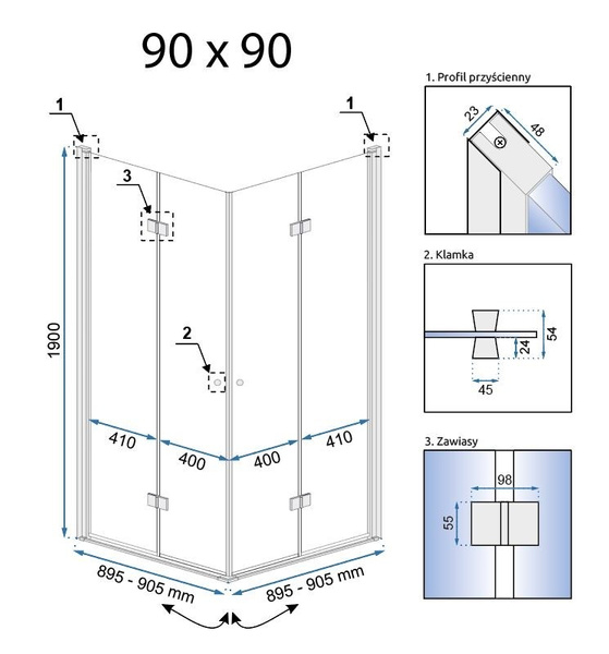 • KABINA FOLD N2 CHROM 90x90