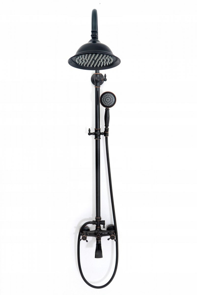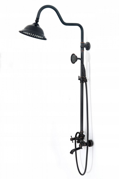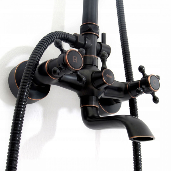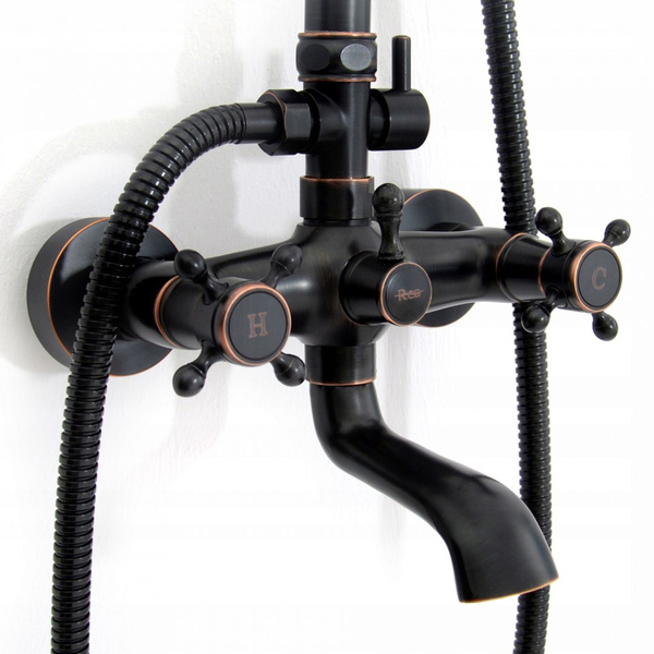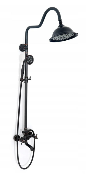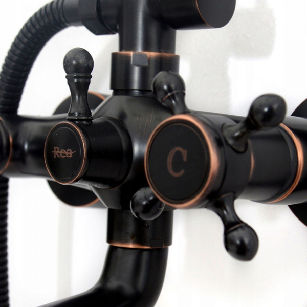 Zestaw prysznicowy natryskowy z wylewką Rea Retro Old Black czarny to wysokiej klasy produkt, który przyciąga wzrok niebanalnym wzornictwem i estetyką wykonania. Charakteryzuje się ciekawą formą, która nawiązuje do stylu vintage, jednak czarny kolor nadaje mu nowoczesnego wykończenia. Zestaw prysznicowy został wykonany z wytrzymałego mosiądzu pokrytego specjalną powłoką, która zapobiega korodowaniu i odkładaniu kamienia. W skład kompletu wchodzi okrągła deszczownica, słuchawka oraz kran z dyszami wyposażonymi w system Anti Calc.