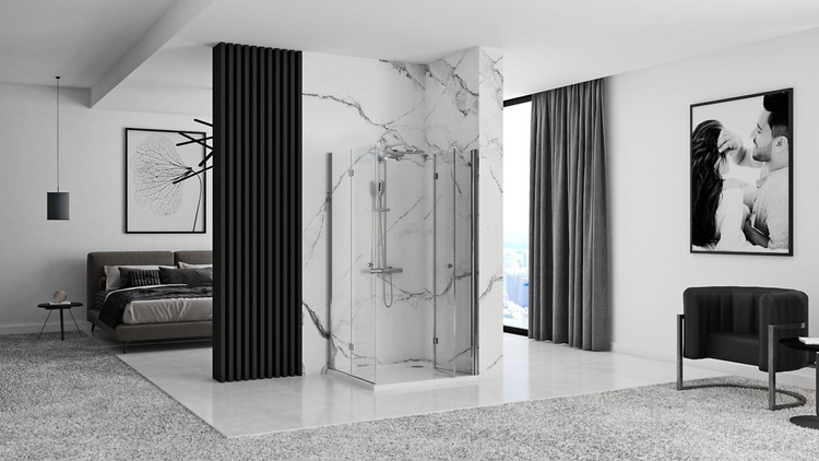 Kabina prysznicowy Fold, składa się z dwojga składanych drzwi szklanych, wykończonych eleganckimi elementami chromowanymi. Model ten jest idealnym rozwiązaniem, w niedużych i nieustawnych pomieszczeniach łazienkowych. Każde ze skrzydeł można złożyć na ścianę, zarówno do środka jak i na zewnątrz. Daje to nieograniczone możliwości w praktycznym użytkowaniu łazienki. Szkło w kabinie Fold jest nie tylko bezpieczne, ale też praktyczne, dzięki zastosowaniu powłoki Easy Clean. Dzięki tej nowoczesnej technologii, na szkle nie osadza się kamień, a czyszczenie nie wymaga użycia silnych środków.