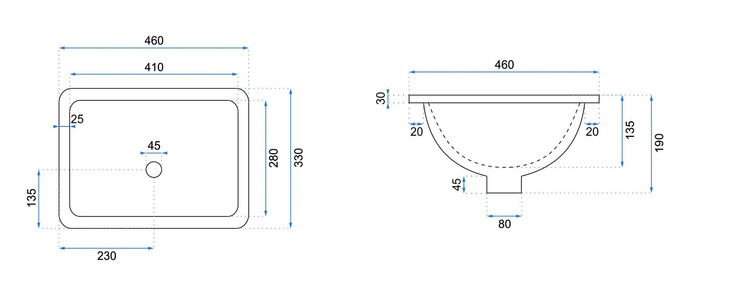 Ceramiczna umywalka, przystosowana do montażu pod blatem. W zestawie znajduje się metalowy komplet montażowy, dzięki czemu w łatwy i szybki sposób można zamontować umywalkę. Do wycięcia gotowy nie jest potrzebny szablon, wystarczy odwrócić umywalkę i odrysować jej kształt na blacie. Następnie należy wyciąć pomniejszaj odpowiednio otwór o ranty umywalki. W ofercie posiadamy idealnie pasujące baterie, syfony i korki w wielu modnych kolorach.