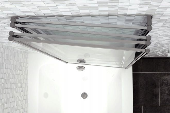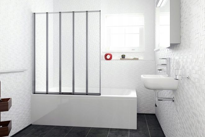 Innowacyjny i uniwersalny parawan dzięki 5 skrzydłowej konstrukcji doskonale dopasuje się do każdego kształtu wanny. Zaawansowane technologicznie zawiasy pozwolą na całkowite złożenie wszystkich skrzydeł na ścianę.