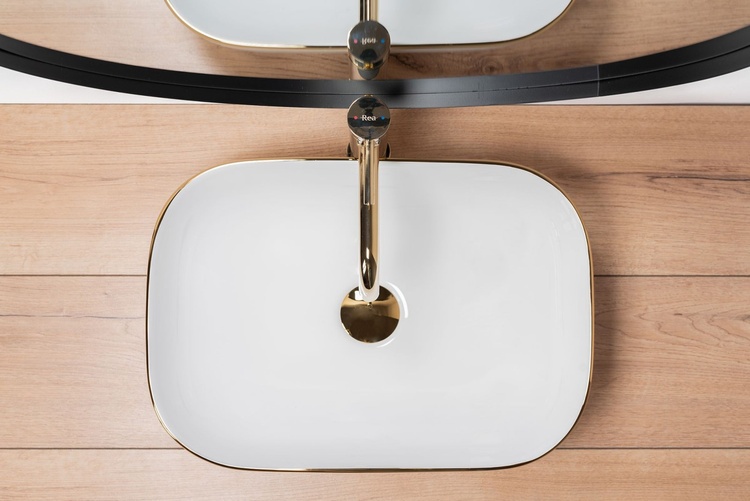 Umywalka Belinda wykonana z wysokogatunkowych materiałów sprosta wymaganiom osób, które cenią sobie jakość. Ciekawe i oryginalne zestawienie śnieżnej bieli wykończonej złotym rantem. Dzięki harmonijnej linii świetnie skomponuje się z każdym stylem, zarówno nowoczesnym jak i klasycznym.