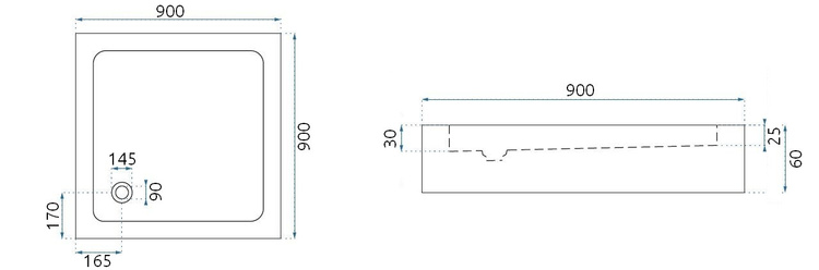 • BRODZIK SAVOY BLACK 90*90*6cm + SYFON