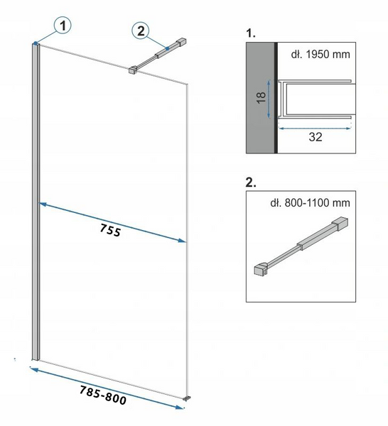 • ŚCIANKA PRYSZNICOWA AERO BLACK 80