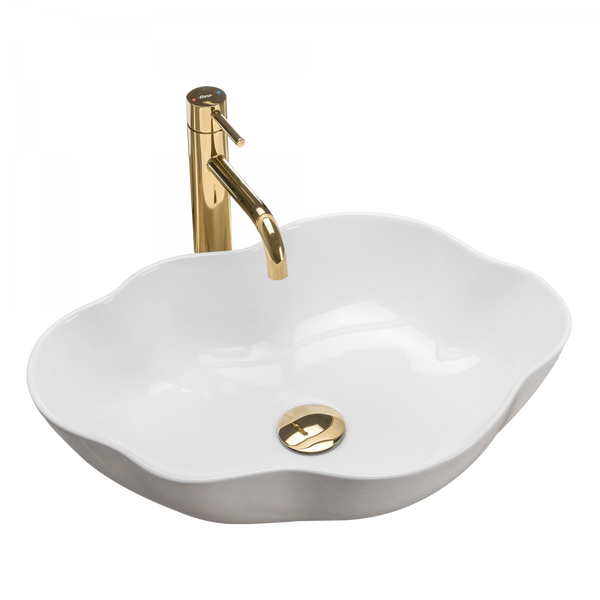 Umywalka wykonana z najwyższej jakości ceramiki w białym kolorze i owalnym, pofalowanym kształcie. Wykończenie na wysoki połysk nada klasy, ozdabiając przy tym wnętrze. Będzie świetnym dodatkiem dla miłośników niestandardowych kształtów, wnosząc elegancję do aranżacji łazienki w domu i biurze.