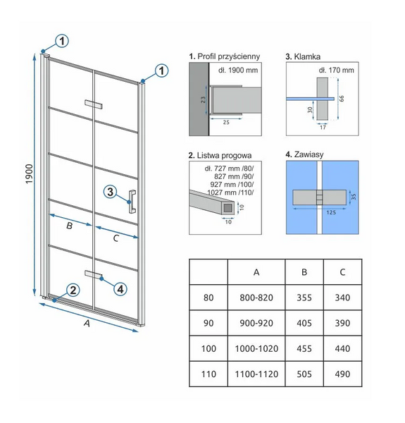 W projektowaniu tego modelu użyliśmy prostych form i kształtów, tworząc drzwi z wygodnym i szerokim wejściem pod prysznic. Unikalna bezramowa konstrukcja i możliwość złożenia drzwi na ścianę, powoduje że drzwi Molier zapewniają oszczędność miejsca i są idealnym rozwiązaniem do każdej łazienki.