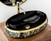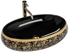 Jest to produkt, który w doskonały sposób wypełni Państwa przestrzeń łazienkową zachowując nienaganny wygląd i estetykę wnętrza. Misa pokryta jest pięknym złotym kolorem o motywie roślinnym, który kontrastuje z czarną barwą.