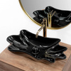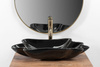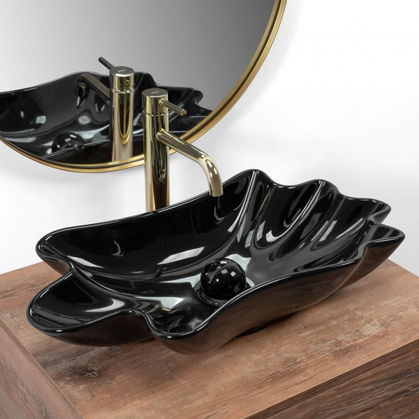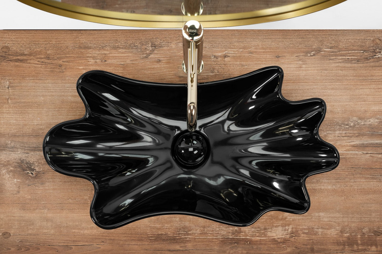 Umywalka wykonana z najwyższej jakości ceramiki w czarnym kolorze i nieregularnym, pofalowanym kształcie. Wykończenie na połysk nada klasy, ozdabiając przy tym wnętrze. Będzie świetnym dodatkiem dla miłośników niestandardowych kształtów, wnosząc elegancję do aranżacji łazienki w domu i biurze.