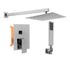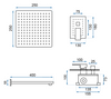 W komplecie znajduje się Ultra Cienka 2mm deszczownica kwadratowa 25 cm, bateria z elementami natynkowymi oraz podtynkowymi, wąż ze słuchawką oraz zestawem punktowym.