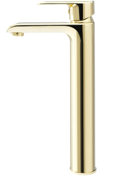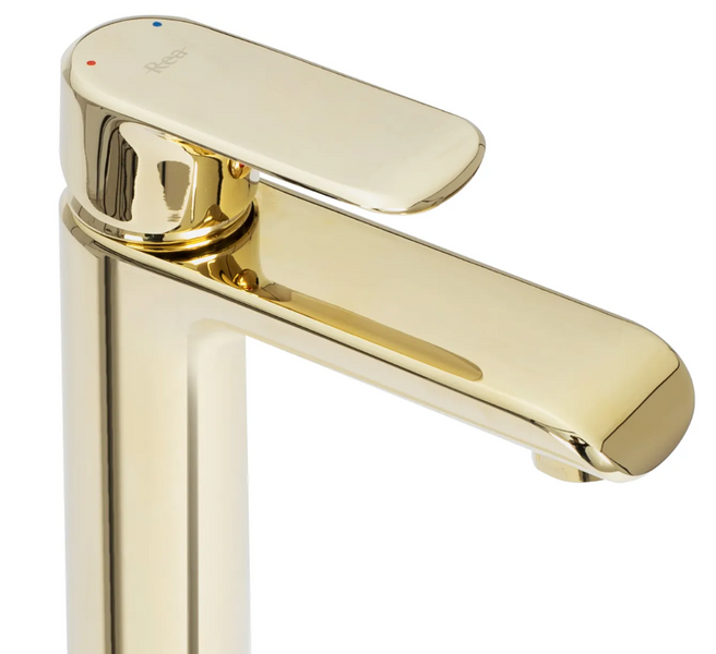 Wysoka bateria umywalkowa Rea Bloom to model, który został wykonany z wysokiej jakości mosiądzu ze złotym wykończeniem w połysku.