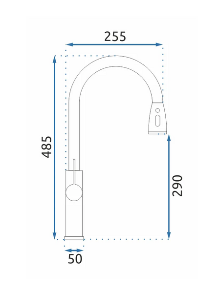 Długoletnią niezawodność gwarantuje użycie ceramicznej głowicy. Wyginana wylewka pozwala na skierowanie strumienia w dowolne miejsce. Końcówka wylewki posiada przełącznik, pozwalający na wybór między strumieniem rozproszonym a skupionym.