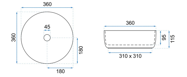 360x360x115 mm