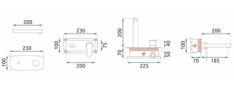 Do baterii podtynkowej, został dołączony innowacyjny system zabudowy typu box, który został wykonany z tworzywa sztucznego oraz mosiężnych elementów wewnętrznych. System ten umożliwia szybki i bezproblemowy montaż baterii. Wewnętrzne elementy zostały zabezpieczone maskownicą.