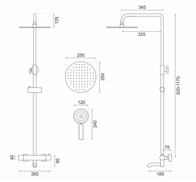 • ZESTAW NATRYSKOWO-WANNOWY LUNGO CHROM TERMOSTAT