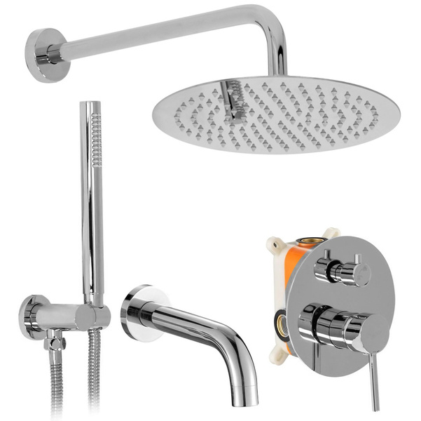 Model ten został wyposażony w wylewkę, deszczownicę, słuchawkę prysznicową, maskownicę oraz komplet akcesoriów do przeprowadzenia montażu. Zestaw prysznicowy charakteryzuje się wysoką odpornością na uszkodzenia oraz wytrzymałością.
