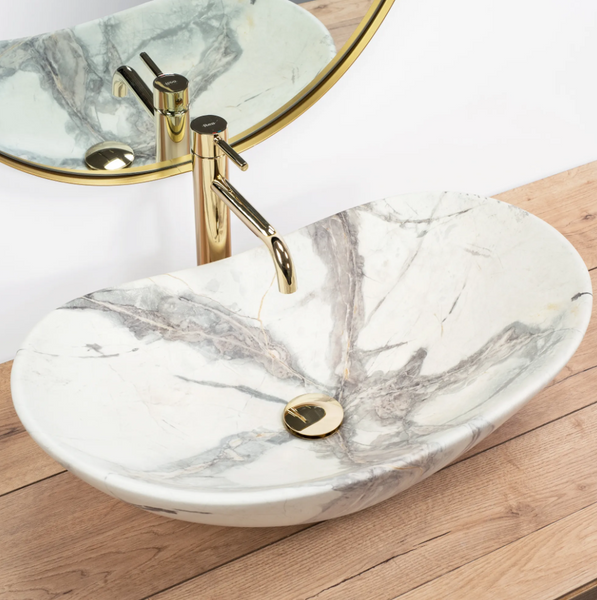 Dzięki technice w jakiej została wykonywana wierzchnia warstwa umywalki, każdy egzemplarz posiada niepowtarzalny i unikalny wzór. Efekt ten imituje naturalny kamień.