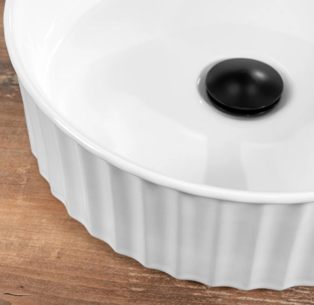 Prezentujemy Państwu umywalkę nablatową, która zapewni Państwa łazience nowoczesny wygląd i wysoką funkcjonalność. Umywalka wykonana jest z wysokiej jakości ceramiki sanitarnej. Powierzchnia zewnętrzna jest ryflowana, tworząc interesujący efekt wizualny nadający łazience niepowtarzalny charakter.
