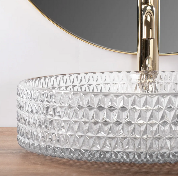 Nowoczesna kryształowa umywalka z serii Cristal będzie wspaniale wyróżniać się w twojej stylowej łazience. Została wykonana z wysokogatunkowego szkła, przystosowana do montażu na blacie bądź szafce. Ciekawy efekt wizualny podkreśli odbijające się w kryształkach światło. Umywalka o kryształowym wykończeniu niewątpliwie wyróżnia się ciekawym wzornictwem i designem.