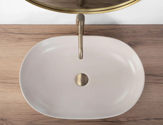 Nadia to umywalka, którą montuje się bezpośrednio na blacie, dzięki czemu można zaaranżować łazienkę oszczędzając sporo miejsca.