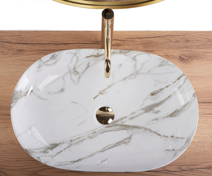 Prezentujemy Państwu nowoczesną, unikalną umywalkę o kamiennym wzorze i niespotykanym kształcie. Umywalka Cleo wniesie elegancję do aranżacji łazienki, może stać się wyjątkowym przełamaniem nudy lub subtelnym dodatkiem. Jeśli postawimy na blask tego szlachetnego koloru to z pewnością efekt końcowy zyska lekkości i oryginalności.