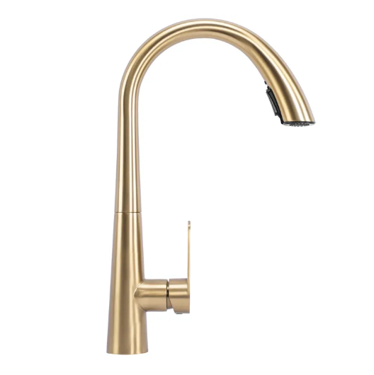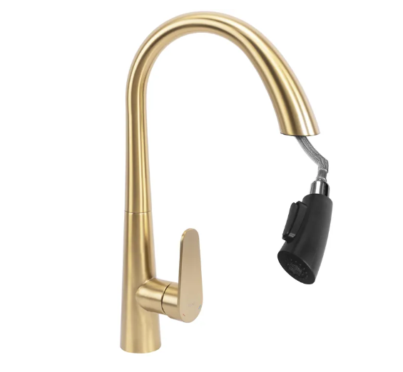 Podstawa każdej funkcjonalnej kuchni to odpowiednia bateria kuchenna. Metalowy korpus, z którego wykonany jest ten produkt, to gwarancja trwałości i stabilności baterii. Pokrycie wytrzymałą powłoką nadaje baterii odporności na zanieczyszczenia, a złoty szczotkowany kolor niezwykłego wyglądu, który idealnie wpasuje się do wystroju Twojej kuchni.