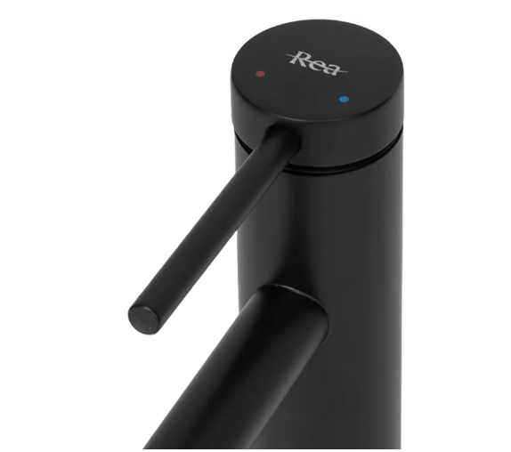 Czarna wysoka bateria umywalkowa Rea Foss Black świetnie prezentuje się we wnętrzach urządzonych zarówno w stylu klasycznym, jak i nowoczesnym. Model wyróżnia atrakcyjny design oraz łatwość obsługi.