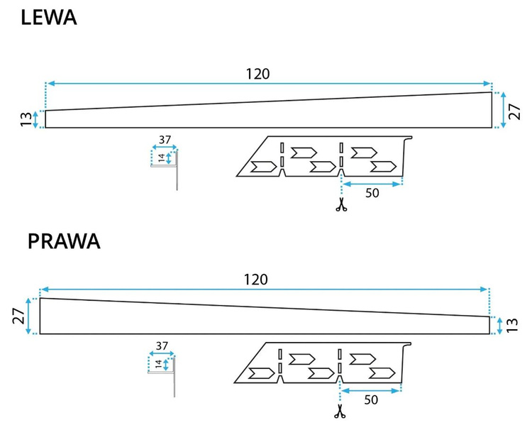 Listwę krawędziową można samodzielnie przyciąć co 5 cm do wymaganej długości.