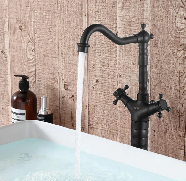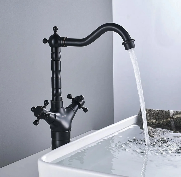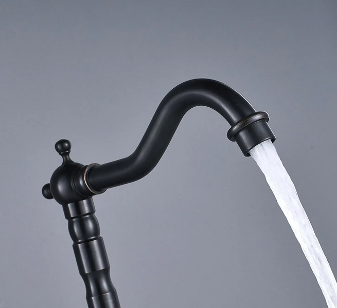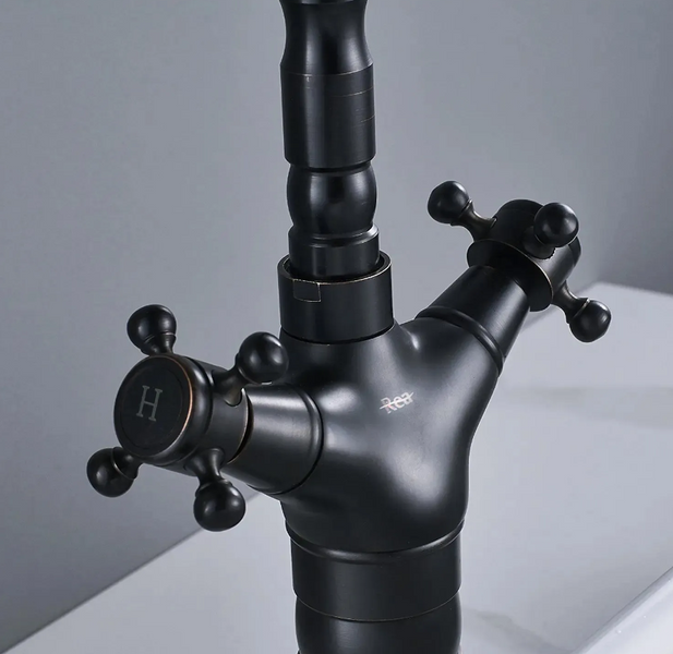 Prezentujemy Państwu niezwykle piękną i wyjątkową w swoim rodzaju baterię z obracaną wylewką. Finalnie osiągnięty styl retro z mosiężnymi elementami wizualnymi, podkreślą wyjątkowość każdej łazienki lub kuchni. Bateria jest przystosowana do montażu na blacie lub zlewozmywaku. Głowica zastosowana w tej baterii jest wyjątkowo wytrzymała przez zastosowany ceramiczny materiał. Bateria została wykonana z mosiądzu pokrytego trwałą warstwą czarnej farby, która jest trwała i łatwa w utrzymaniu.