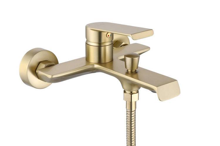 Prezentujemy Państwu piękną, niezwykle funkcjonalną i nowoczesną baterię wannową. Jest to produkt, który w doskonały sposób wypełni Państwa przestrzeń łazienkową zachowując nienaganny wygląd i estetykę wnętrza. Bateria jest przystosowana do montażu ściennego. Została wykonana z mosiądzu pokrytego potrójną złotą matową warstwą. Dzięki specjalnej fazie produkcji jest trwała i łatwa w utrzymaniu czystości.