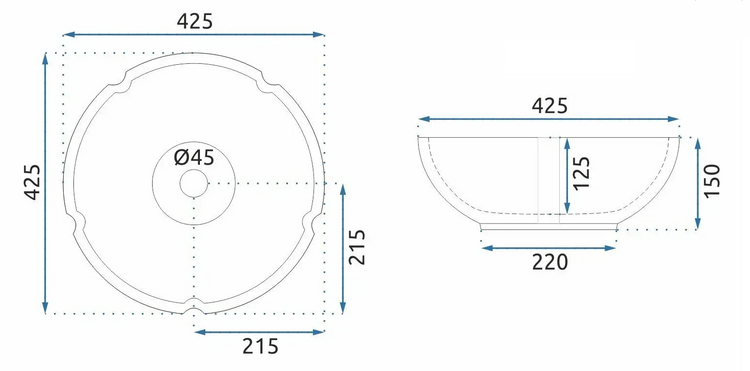 425x425x150 mm