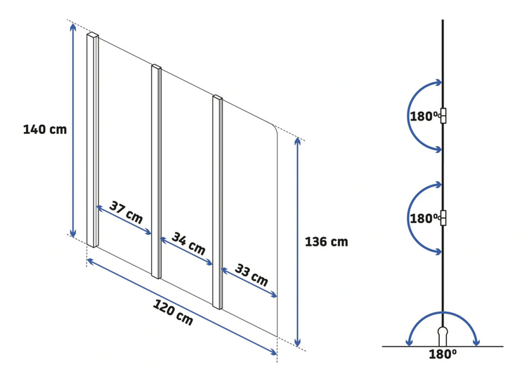 Wysokiej jakości składany parawan wannowy Rea Agat 120 stanowi idealne połączenie walorów użytkowych i estetycznych. Model zamontowany na brzegu wanny nadaje łazience niepowtarzalnego charakteru. Dzięki kompaktowej, harmonijkowej konstrukcji z trzech tafli będzie idealnym wyborem do każdej łazienki. Niewielka szerokość pojedynczej tafli szkła parawanu Agat sprawia, że możemy zamknąć parawan przy ścianie, dzięki czemu będzie on zabierał bardzo mało miejsca.