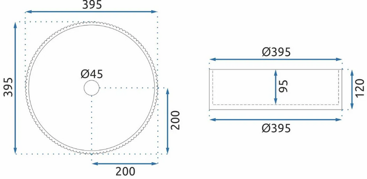 395x395x120 mm