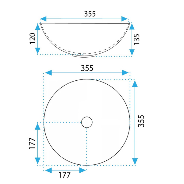 355x355x135 mm