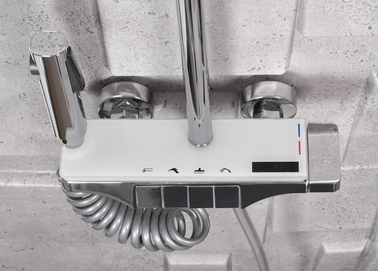 Zestaw Savio posiada wbudowany wyświetlacz LCD, dzięki któremu użytkownicy mają stały dostęp do informacji o aktualnej temperaturze wody, co umożliwia szybkie i dokładne dostosowanie jej do indywidualnych preferencji. Bateria posiada niebieskie podświetlenie LED