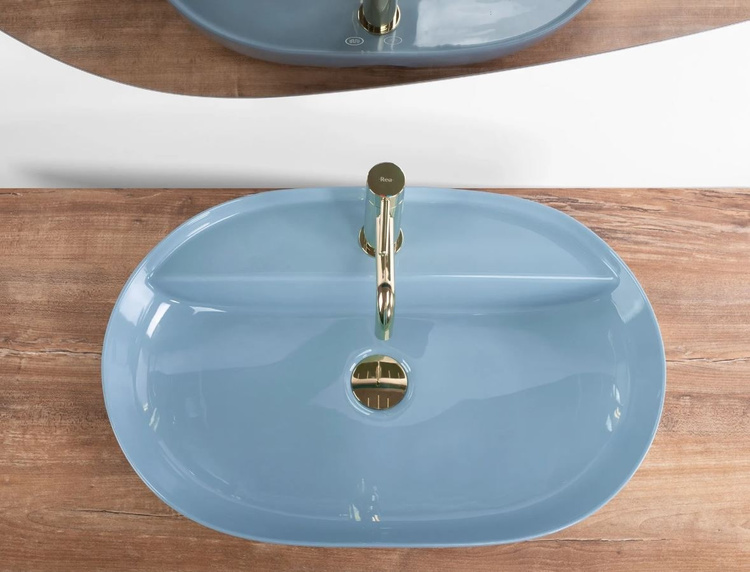 Umywalka Rea Aura w interesującym, eliptycznym kształcie doskonale dopełni każde nowoczesne wnętrze. Jest przystosowana do montażu na blacie bądź szafce.