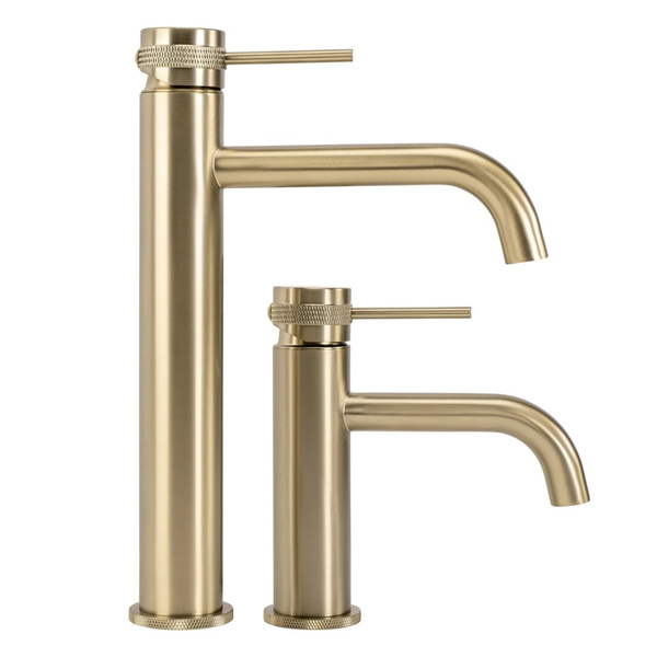 Bateria umywalkowa niska Lungo Grip w złotej szczotkowanej wersji to elegancka propozycja do nowoczesnych łazienek. Jej minimalistyczny design i subtelne złote wykończenie nadają wnętrzu luksusowego charakteru, a ergonomiczny uchwyt zapewnia wygodną regulację przepływu wody.