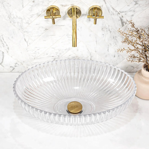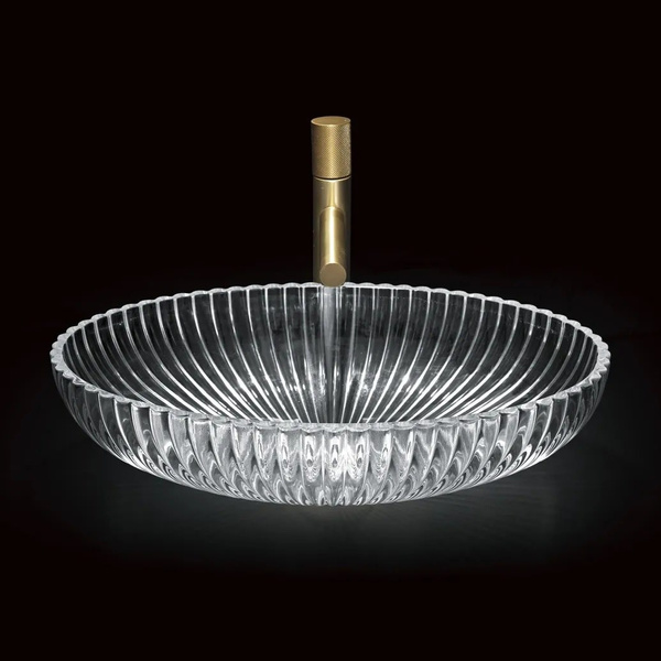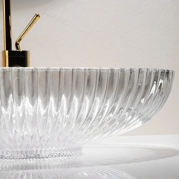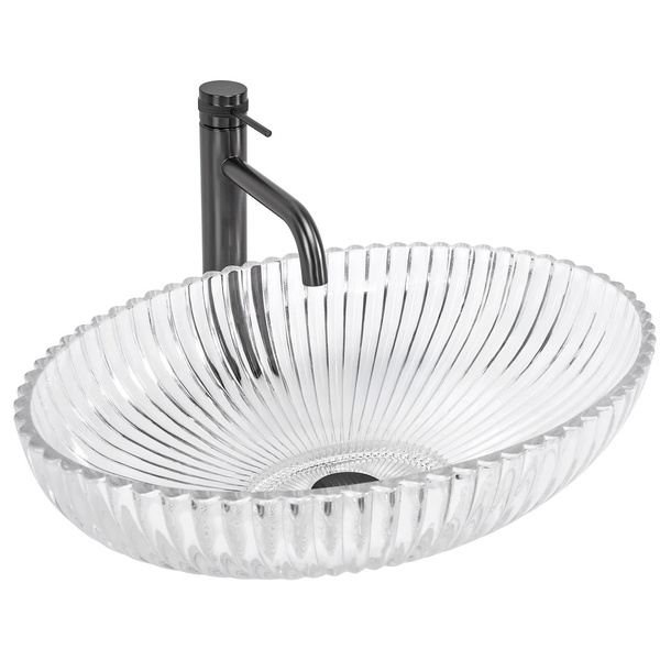 Umywalka nablatowa kryształowa Nicole to doskonałe połączenie elegancji i funkcjonalności. Wykonana z wysokogatunkowego szkła hartowanego, zachwyca precyzyjnym wykończeniem i unikalną, ryflowaną strukturą, która pięknie odbija światło, tworząc efekt luksusu w każdej łazience. Dzięki swojej nablatowej konstrukcji doskonale sprawdzi się zarówno na blacie, jak i na szafce łazienkowej, harmonijnie komponując się z nowoczesnymi oraz klasycznymi aranżacjami. Odporność na zarysowania i łatwość w utrzymaniu czystości sprawiają, że jest nie tylko stylowym, ale i praktycznym wyborem dla wymagających użytkowników.
