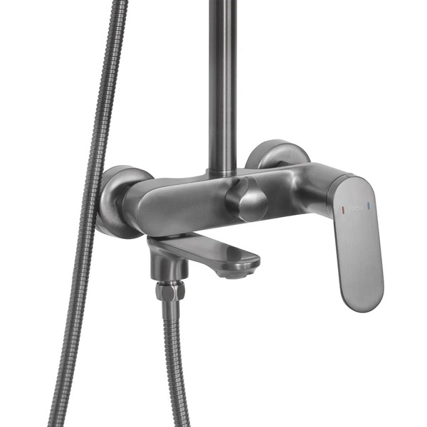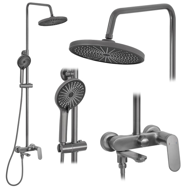 Zestaw Prysznicowy Marco Tytan Zestaw natryskowy Marco ze składaną wylewką został zaprojektowany z myślą o wygodzie i funkcjonalności. Dzięki specjalnej fazie produkcji gwarantuje maksymalne bezpieczeństwo i komfort w codziennym użytkowaniu. Minimalistyczny, elegancki design w grafitowym, szczotkowanym wykończeniu wpisuje się zarówno w nowoczesne, jak i klasyczne wnętrza. Zestaw został wykonany z wysokiej jakości materiałów, co zapewnia jego trwałość i wytrzymałość. Dzięki powłoce wykonanej w technologii PVD, jest odporny na zarysowania i łatwy w utrzymaniu czystości.