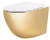 Misa WC podwieszana z zewnętrznym wykończeniem w złotym połysku to propozycja dla osób poszukujących nowoczesnych i efektownych rozwiązań do łazienki. Wnętrze misy pozostaje klasycznie białe, co podkreśla higieniczny charakter ceramiki i zapewnia estetyczny kontrast. Zastosowany w tym modelu system spłukiwania Tornado NFQ (Noise-Free Quiet) gwarantuje skuteczne i ciche spłukiwanie przy minimalnym zużyciu wody. Brak kołnierza wewnętrznego znacząco ułatwia utrzymanie misy w czystości i ogranicza rozwój bakterii w trudno dostępnych miejscach.