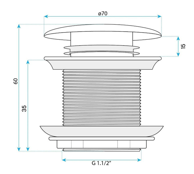 Prezentujemy korek klik-klak wannowy bez otworu przelewowego, wykonany z wysokiej jakości mosiądzu. To uniwersalne rozwiązanie, które pasuje do każdej wanny ze standardowym otworem odpływowym o średnicy 48 mm – zarówno do modeli wyposażonych w przelew, jak i tych bez przelewu.