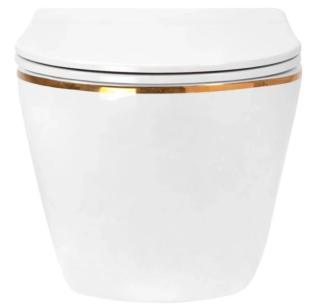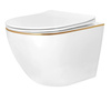Podwieszana misa WC bezkołnierzowa w kolorze białym ze złotym rantem to nowoczesne rozwiązanie do eleganckich łazienek. Model wyposażono w innowacyjny system spłukiwania Tornado NF (New Flushing), który zapewnia skuteczne, ciche i oszczędne spłukiwanie przy minimalnym zużyciu wody.