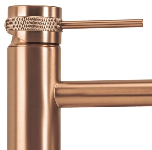 Bateria umywalkowa wysoka Lungo Grip w kolorze miedzi szczotkowanej to elegancka i funkcjonalna opcja do nowoczesnych łazienek. Jej smukły kształt i subtelne miedziane wykończenie nadają wnętrzu luksusowego charakteru, a ergonomiczny uchwyt ułatwia wygodne regulowanie przepływu wody.