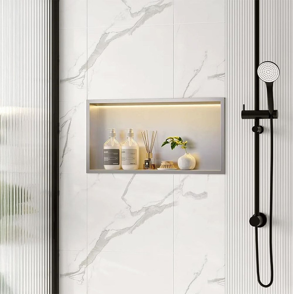 Półka wnękowa łazienkowa z oświetleniem LED to funkcjonalne i estetyczne rozwiązanie, które doskonale sprawdzi się pod prysznicem, nad wanną lub w innej strefie łazienki. Wykonana z wysokiej jakości stali nierdzewnej AISI 304, jest odporna na wilgoć, korozję i intensywne użytkowanie, dzięki czemu zachowuje swój wygląd na lata.