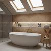 Nowoczesna i elegancka bateria wannowa Drop w kolorze złotym szczotkowanym to połączenie wyjątkowego designu i wysokiej funkcjonalności. Jej geometryczna forma oraz subtelne wykończenie sprawiają, że doskonale uzupełnia strefę kąpielową, podkreślając estetykę zarówno nowoczesnych, jak i klasycznych wnętrz. Korpus baterii został wykonany z mosiądzu, co gwarantuje trwałość i odporność na korozję. Baterię wykonano z trwałego mosiądzu i wykończono powłoką w technologii PVD, która skutecznie chroni powierzchnię przed zarysowaniami, korozją i działaniem wilgoci. Ceramiczna głowica umożliwia płynną regulację temperatury i strumienia wody, a solidna konstrukcja zapewnia wygodę i niezawodne działanie w codziennym użytkowaniu.