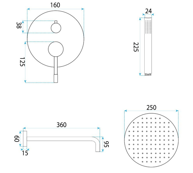 Całość została wykonana z wysokiej jakości materiałów, a chromowana powłoka nadaje elementom wyjątkowego blasku i trwałości. Deszczownica gwarantuje równomierny, relaksujący strumień wody, natomiast smukła słuchawka prysznicowa zapewnia wygodę w codziennym użytkowaniu. Charakterystyczne pokrętła z diamentowym szlifem podkreślają unikalny charakter zestawu, dodając mu luksusowego wyglądu.