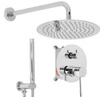 Zestaw prysznicowy podtynkowy Lungo Diamond to połączenie nowoczesnego wzornictwa i komfortu codziennego użytkowania. W komplecie znajduje się elegancka deszczownica, praktyczna słuchawka prysznicowa oraz bateria podtynkowa z przełącznikiem funkcji, co zapewnia pełną wygodę podczas kąpieli.
