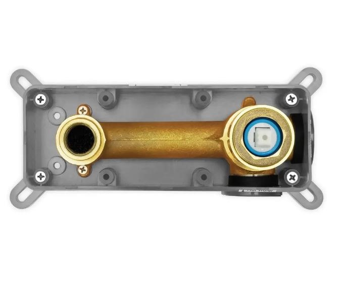 Dodatkowym atutem jest System zabudowy Box, który umożliwia szybki i wygodny montaż baterii podtynkowej. Wykonany z tworzywa sztucznego i elementów mosiężnych, gwarantuje niezawodność oraz precyzję instalacji. Zastosowana część maskująca chroni elementy wewnętrzne podczas montażu, a wbudowana poziomica ułatwia dokładne ustawienie. System zapewnia również łatwy dostęp do podzespołów w przypadku konserwacji.